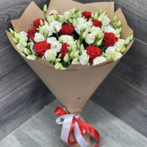 Kırmızı Gül – Beyaz Lisyantus Buketi